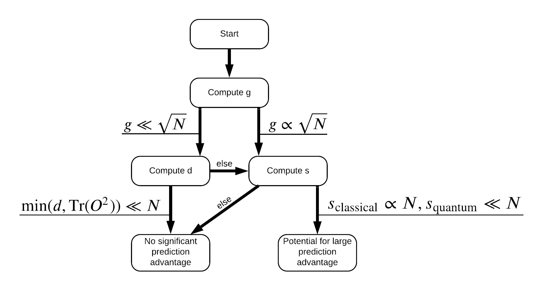 In order to maximize the seperation between quantum and classical models, you will attempt to maximize the geometric difference between the original dataset and the PQK features kernel matrices \(g(K_1 || K_2) = \sqrt{ || \sqrt{K_2} K_1^{-1} \sqrt{K_2} || _\infty}\) using S_pqk, V_pqk and S_original, V_original. A large value of \(g\) ensures that you initially move to the right in the flowchart down towards a prediction advantage in the quantum case.