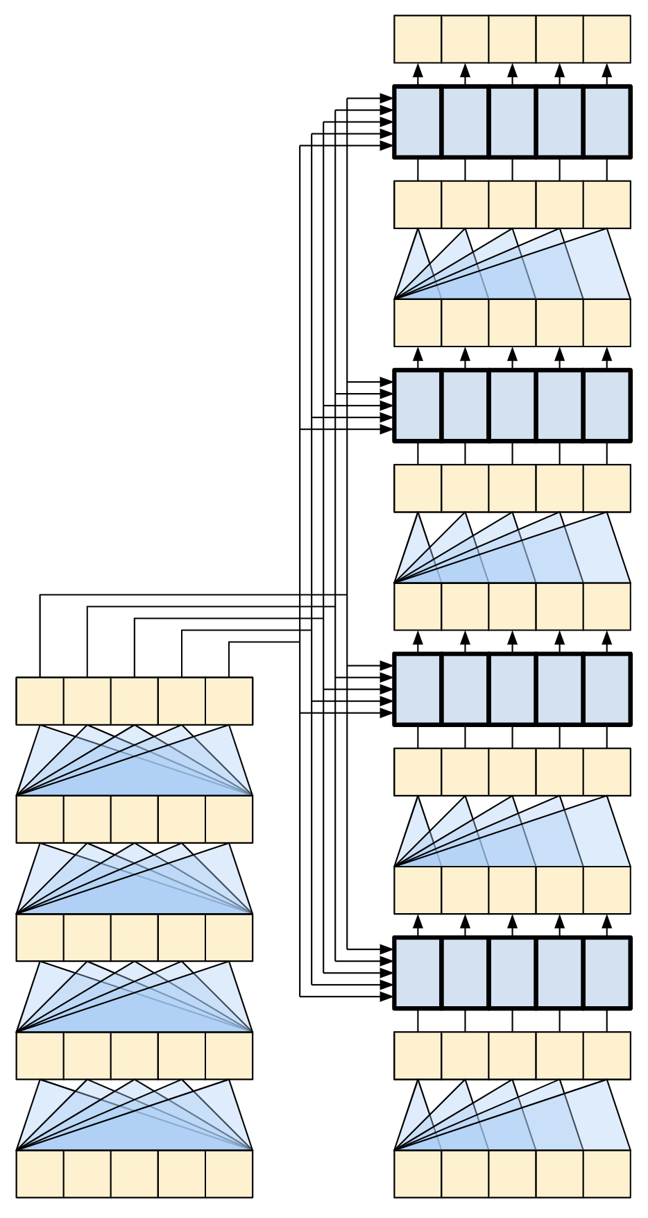 - For a time-series, the output for a time-step is calculated from the entire history instead of only the inputs and current hidden-state. This may be less efficient.